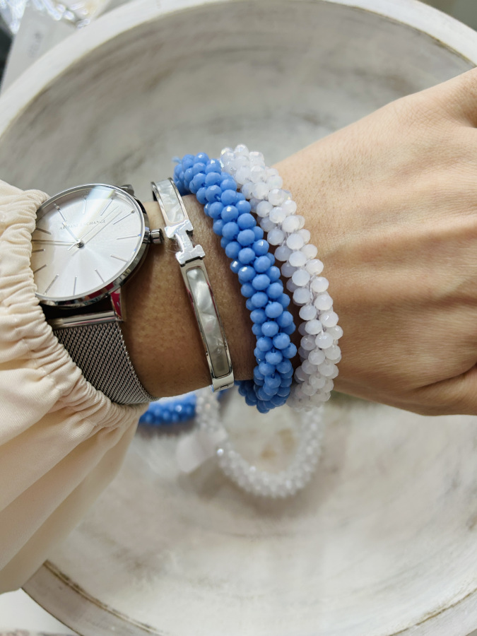 Korákový pružný náramok, ktorý sa prispôsobí veľkosti každej ruky.