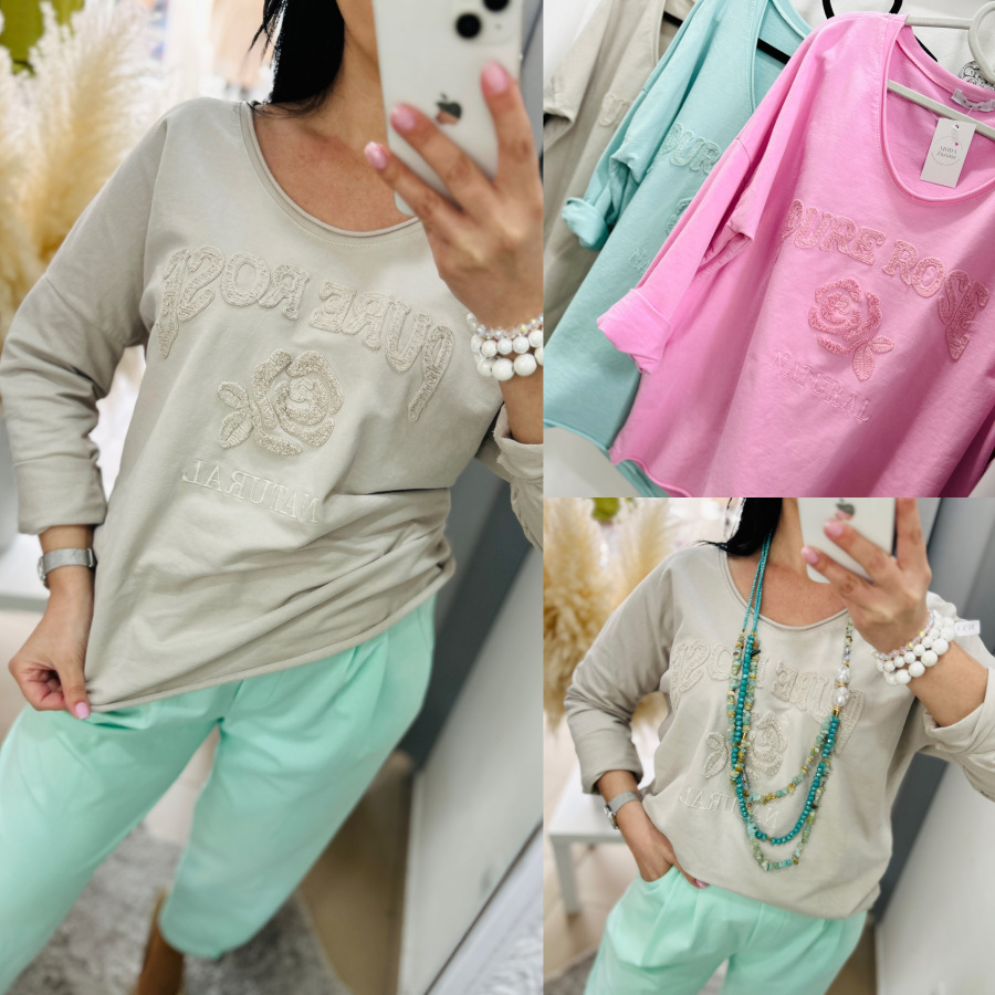 Bavlnený top s dlhými rukávmi, miernym výstrihom a nášivkou. Veľkosť UNI (L XL XXL)