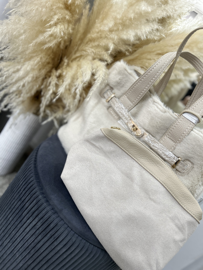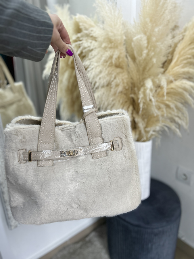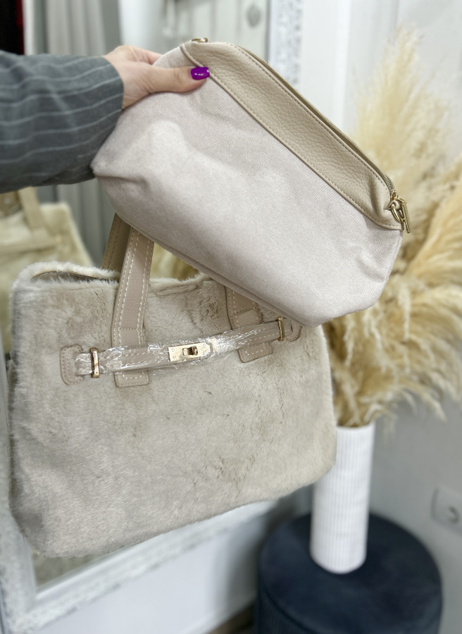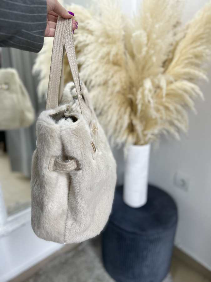 Elegantná béžová kabelka s jemnou kožušinkou je štýlovým doplnkom, ktorý dodá outfitu nádych luxusu a útulnosti. Kabelka sa uzatvára praktickým magnetickým zapínaním, vďaka ktorému je manipulácia rýchla a pohodlná.