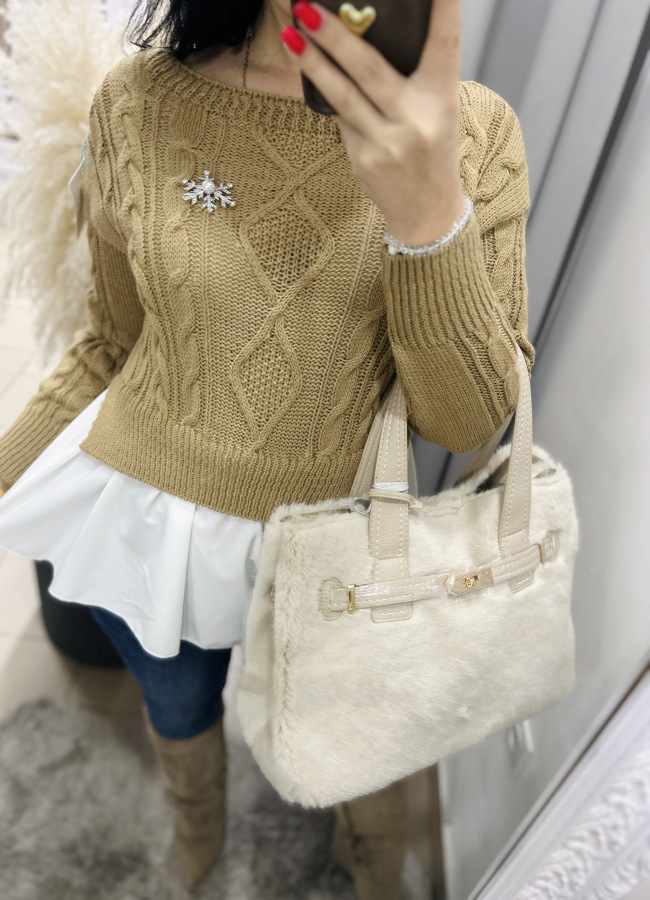 Béžová kabelka s kožušinkou