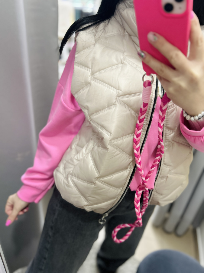 Prešívaná vesta bez rukávov so štýlovým vzorom, zapínaním na zips a bočnými vreckami. Veľkosť UNI (M L XL)