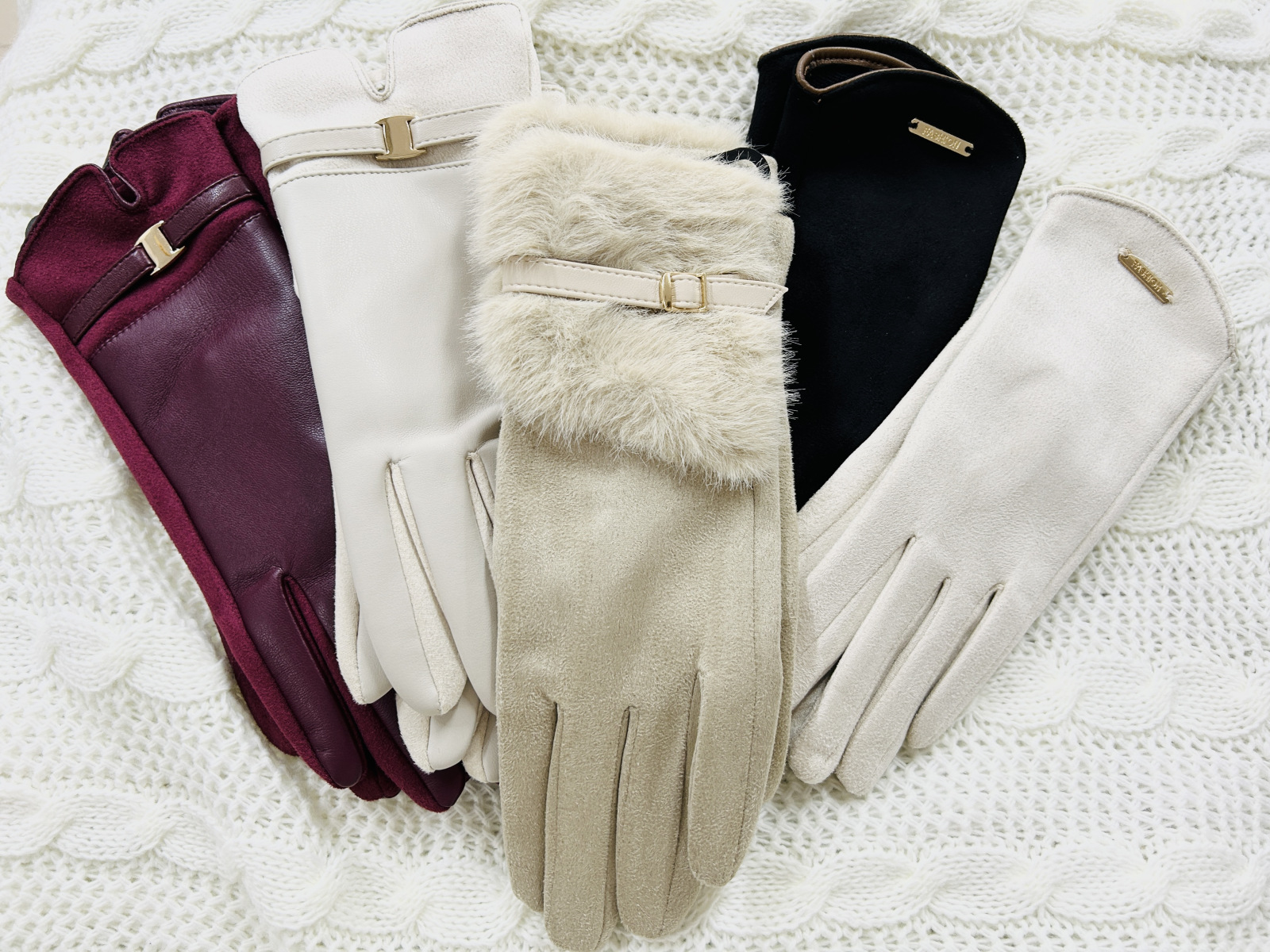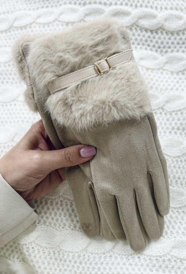 Dámske rukavice v béžovej farbe zdobené kožušinkou. Veľkosť UNI.