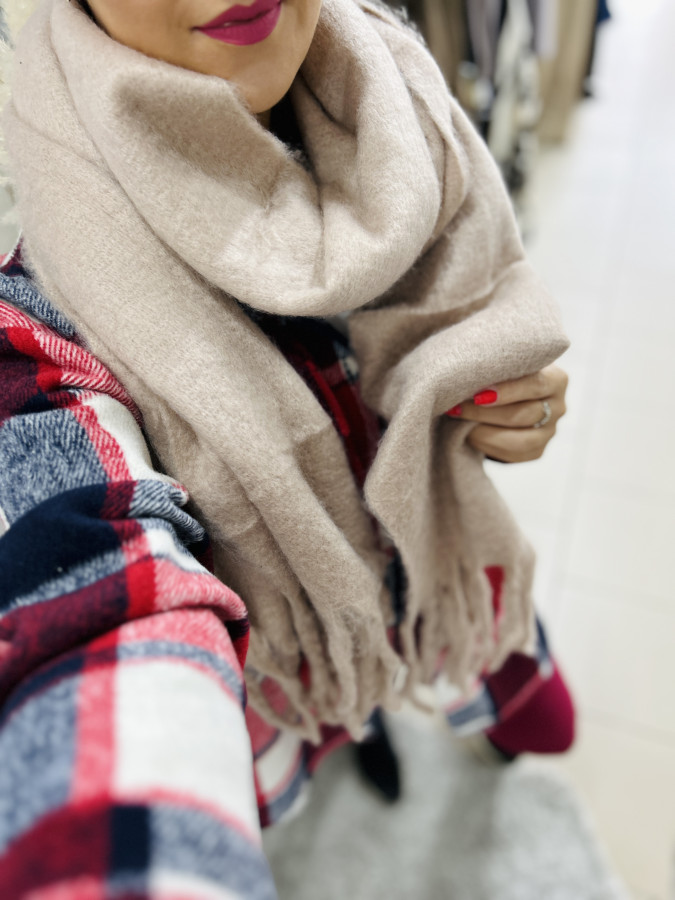 Dlhý šál z jemnej látky, ktorá je veľmi príjemná na telo. Šál je zdobený strapcami.