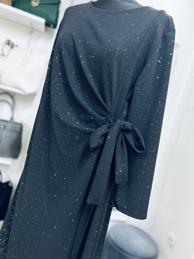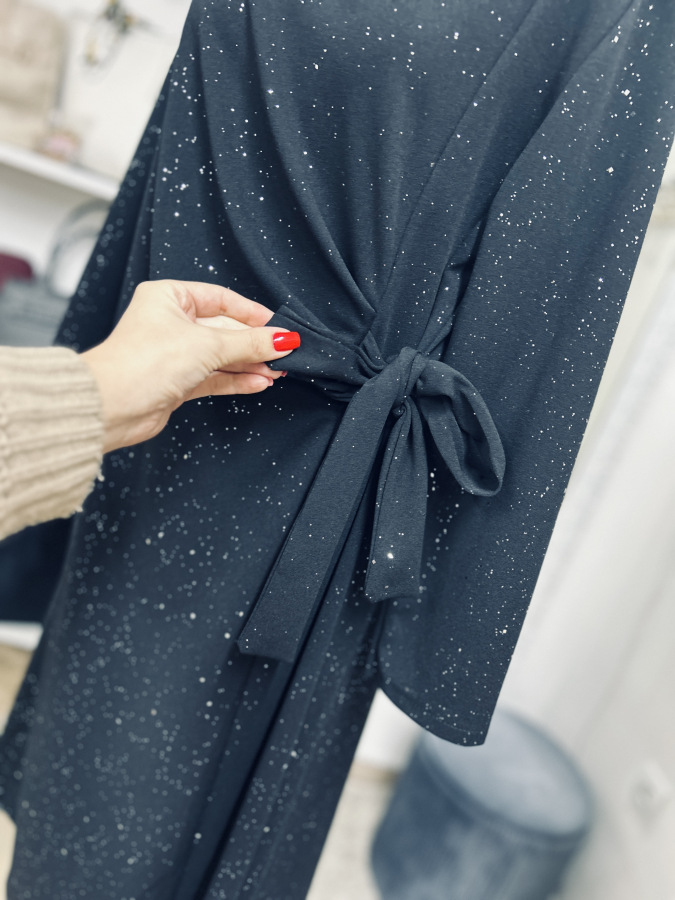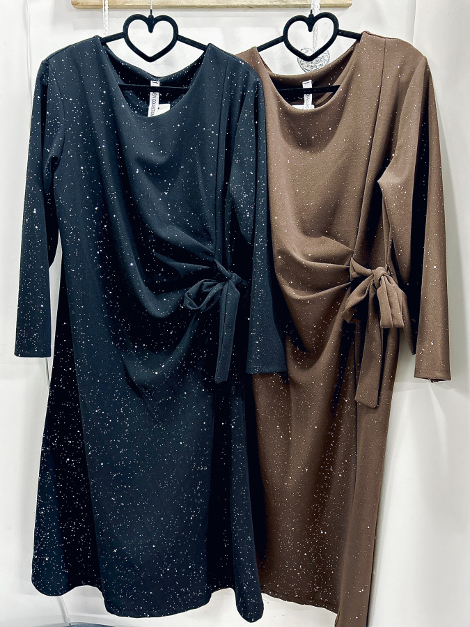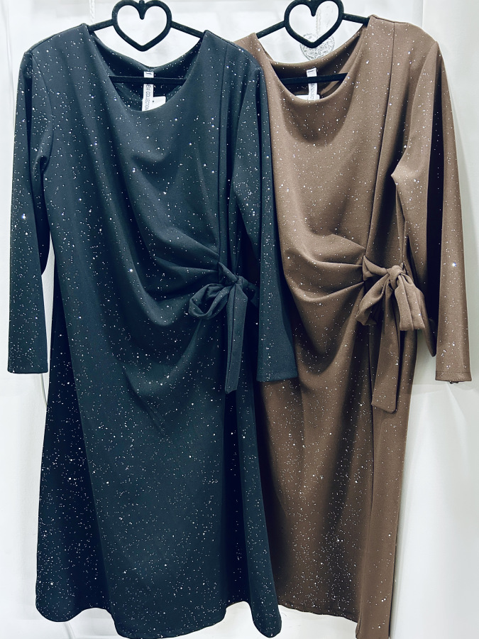 Príjemný materiál s jemným trblietavým efektom dodáva šatám slávnostný nádych, takže sú ideálne na spoločenské udalosti, rodinné oslavy či večerné príležitosti. Dostupné v elegantnej čiernej a teplej hnedej farbe.