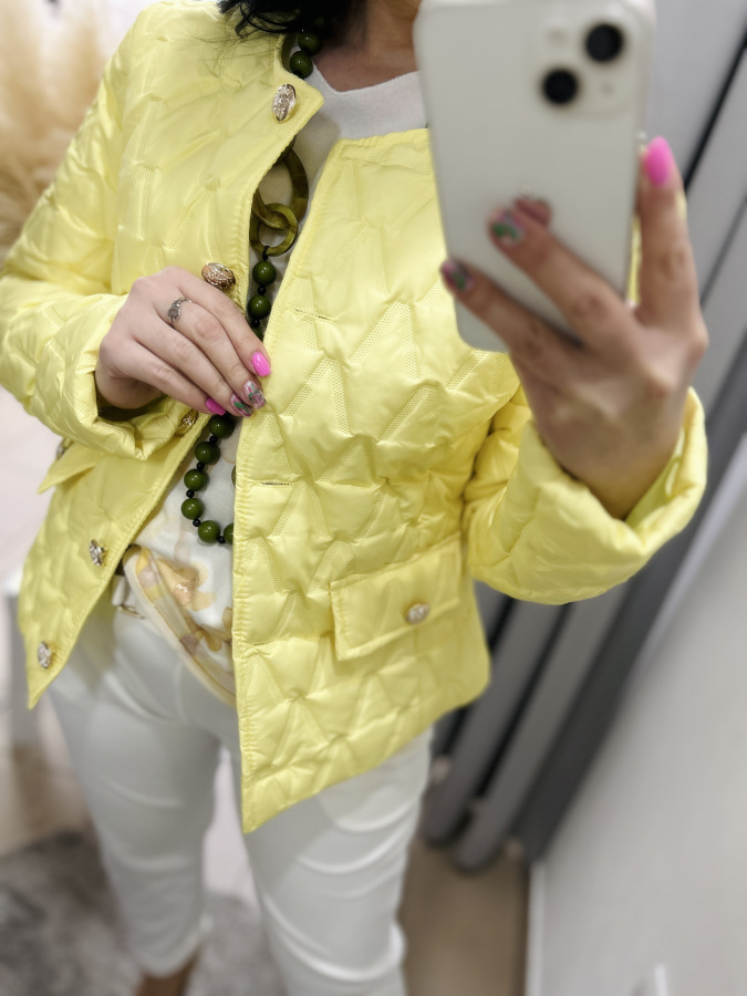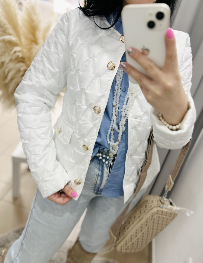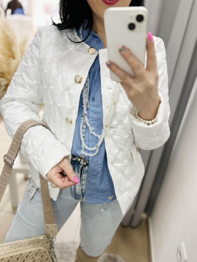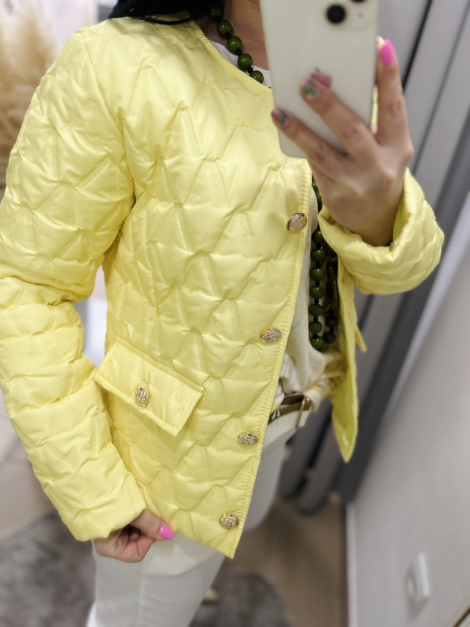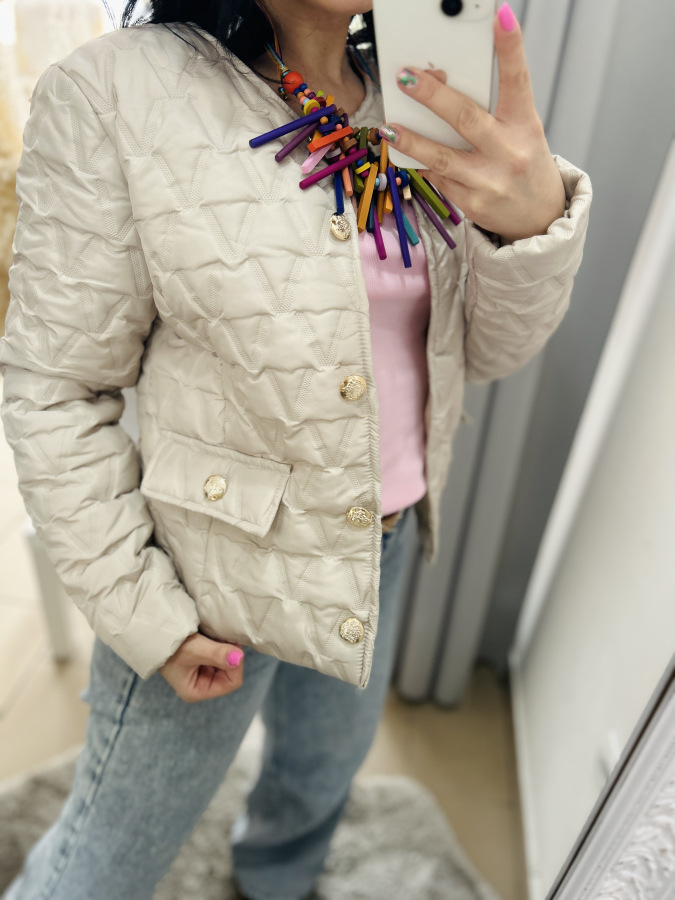 Nádherná prechodná bundička, ktorá má veľmi dobrý strih. Zapínanie na gombíky.