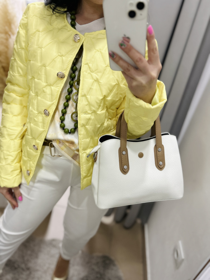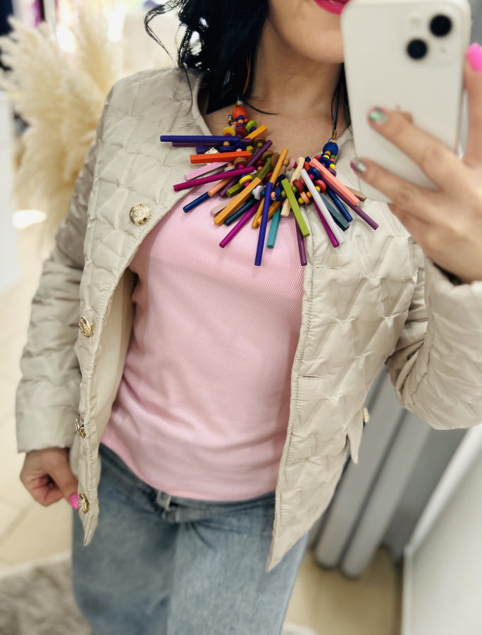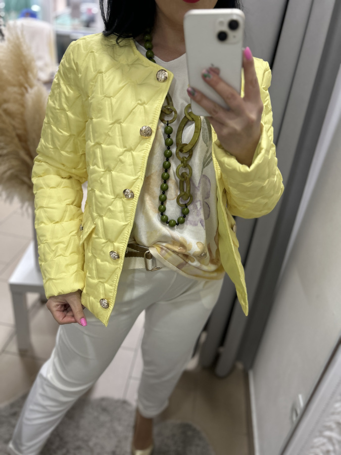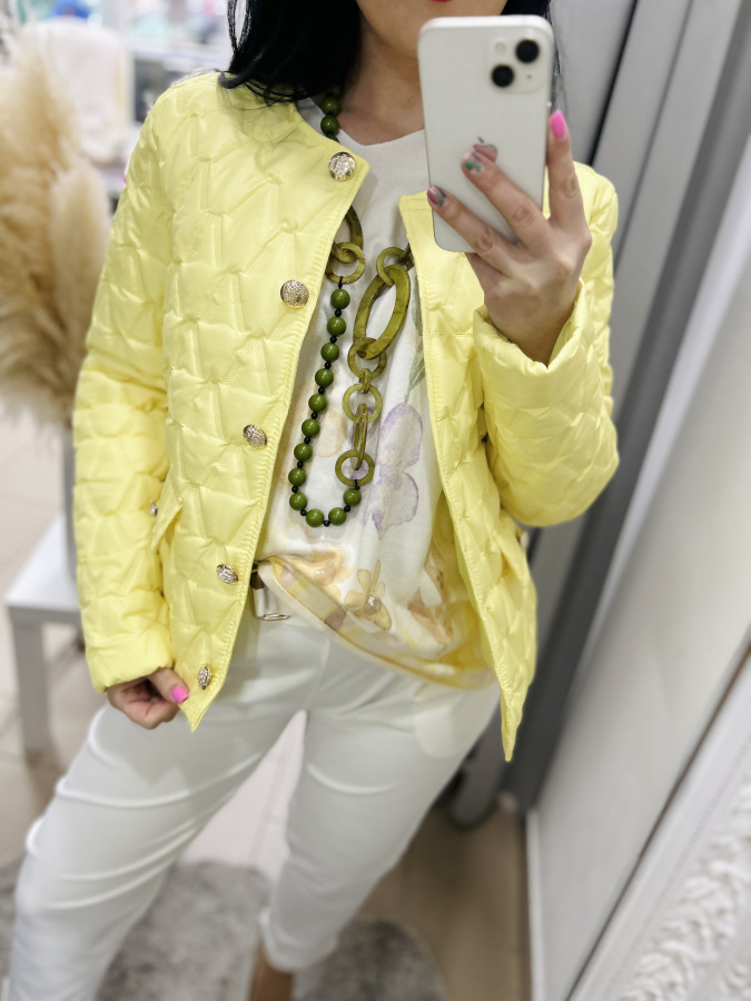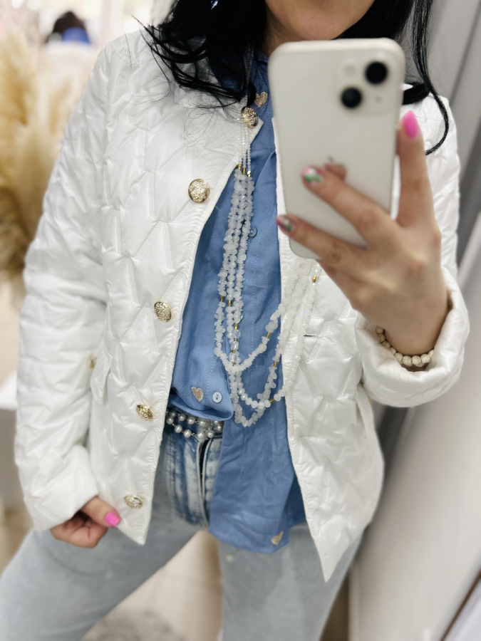 Nádherná prechodná bundička, ktorá má veľmi dobrý strih. Zapínanie na gombíky.