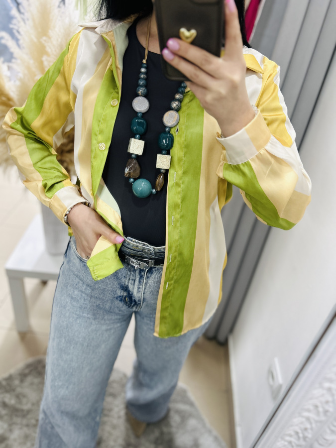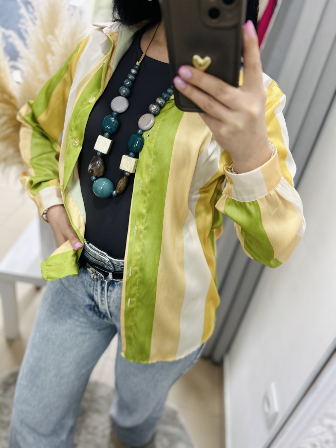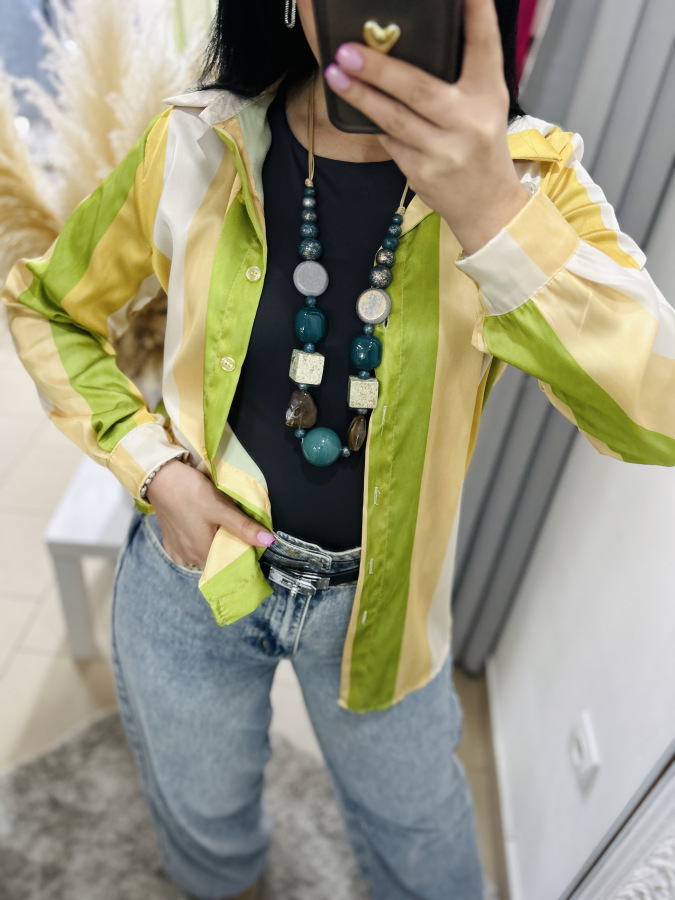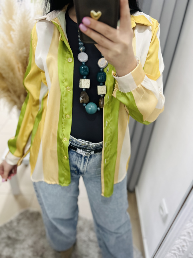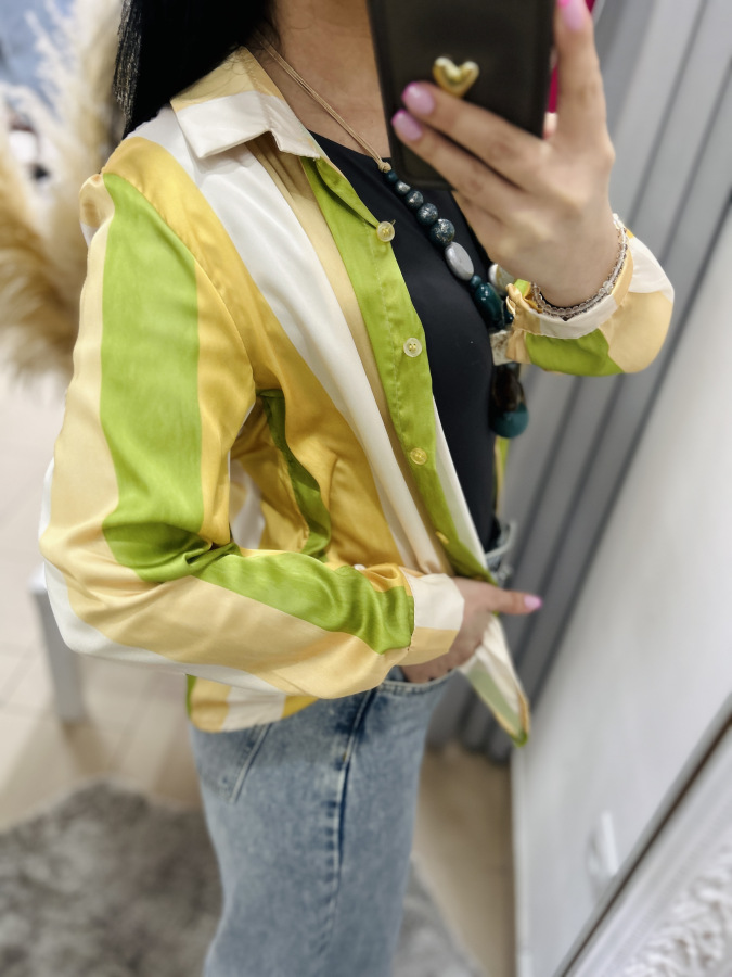 Pruhovaná košeľa s dlhým rukávom, golierom a so zapínaním na gombíky. Veľkosť UNI (S M L)