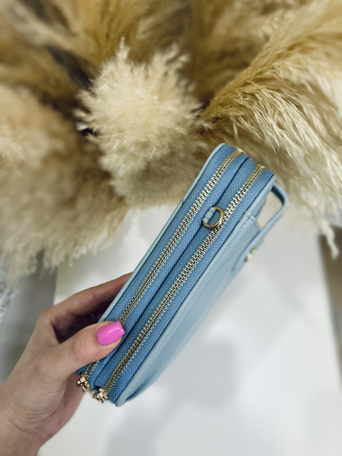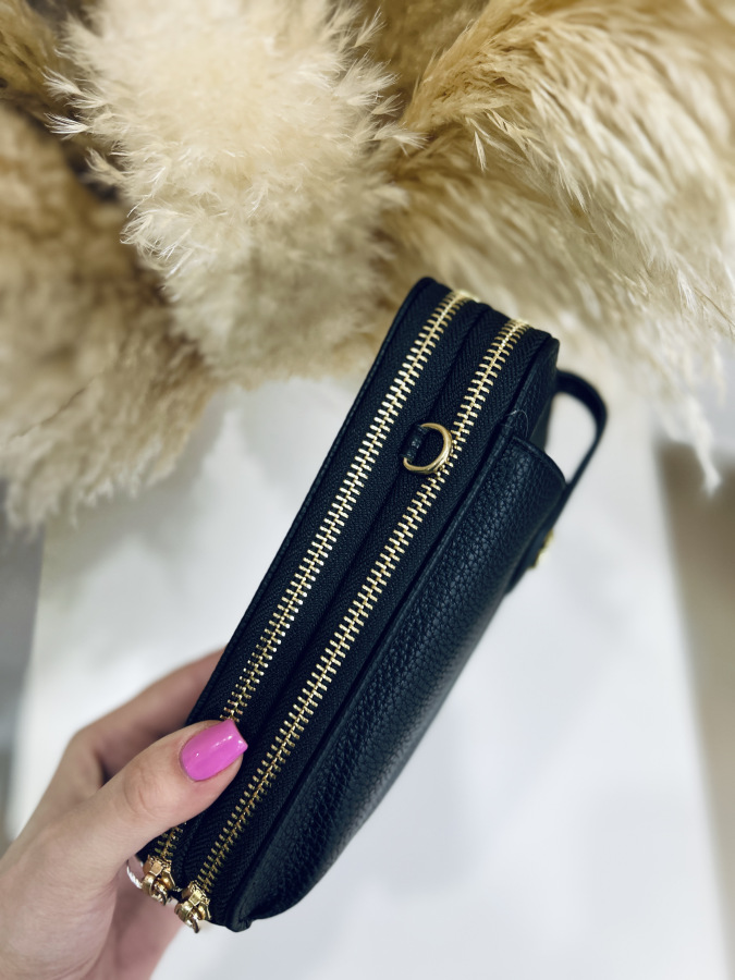 Puzdro na peniaze a mobil 2v1. Súčasťou je nastaviteľné crossbody ramienko, vďaka ktorému ho môžeš pohodlne nosiť cez plece alebo ako malú kabelku.Rozmery: 19 cm x 12 cm