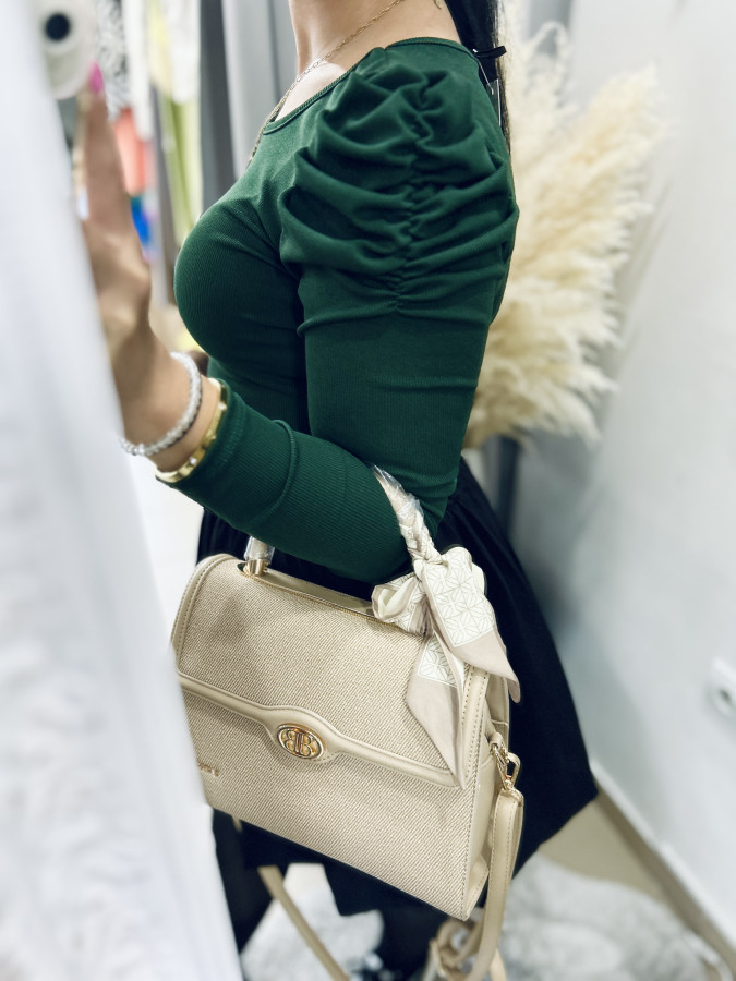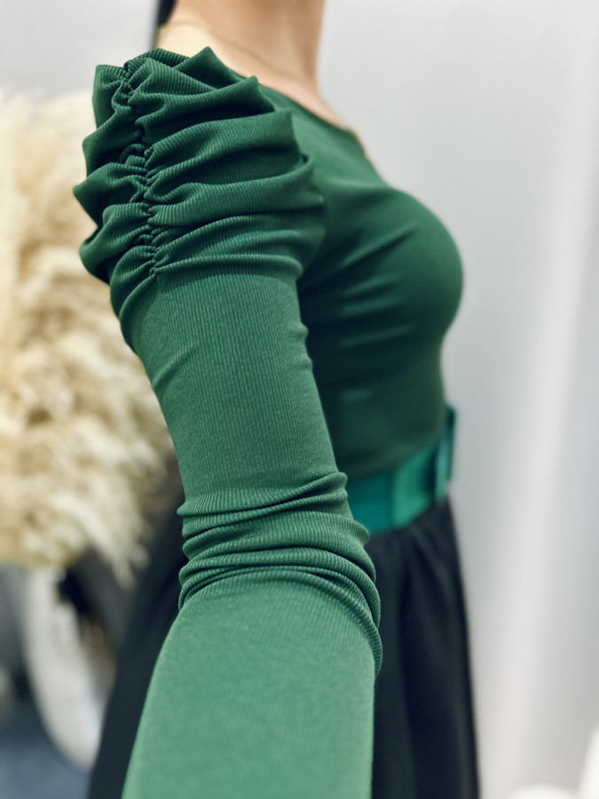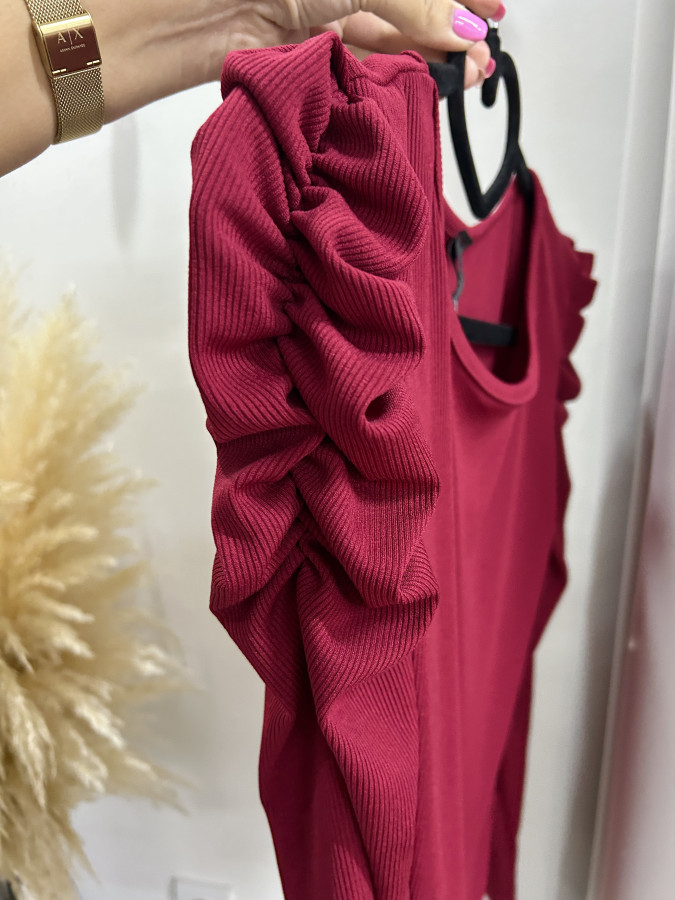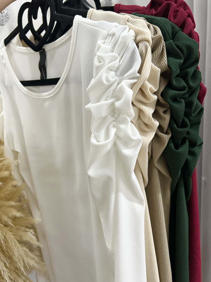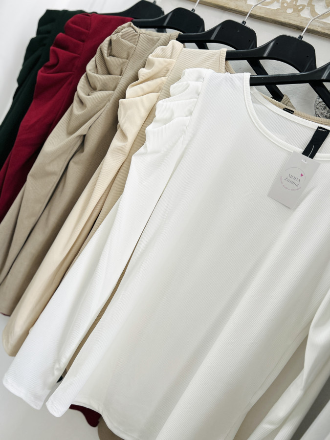 Elastický rebrovaný top s mierne nariasenými rukávmi. Vynositeľný k rôznym outfitom. Veľkosť UNI (XS S M L)