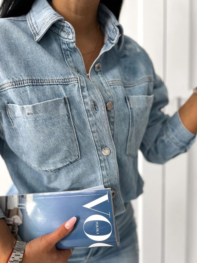 Bavlnená rifľová košeľa z mäkkej rifľoviny. Vynositeľná k čomukoľvek. Zapínanie na gombíky, predné funkčné vrecká.