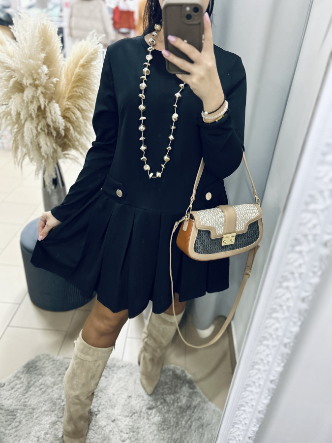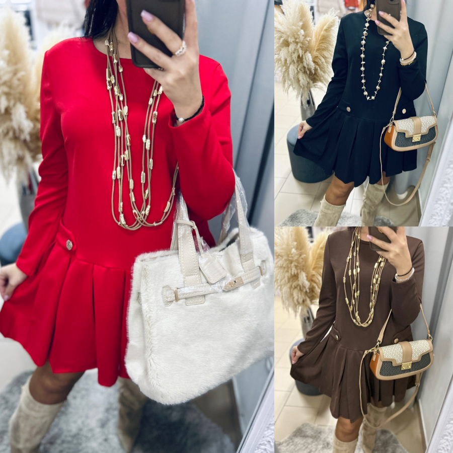 Štýlové a pohodlné šaty s dlhým rukávom, jemne rozšírenou sukničkou a dekoratívnymi gombíkmi po bokoch. Vďaka univerzálnej veľkosti krásne sedia na postavu S, M aj L – prispôsobia sa a zvýraznia ženskú siluetu.