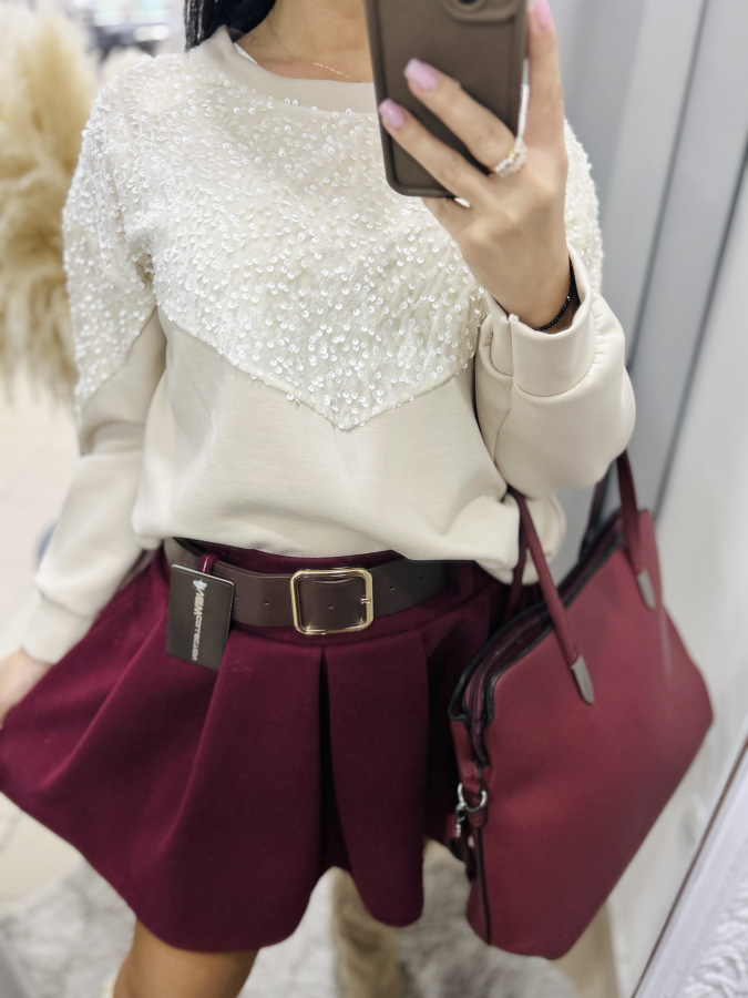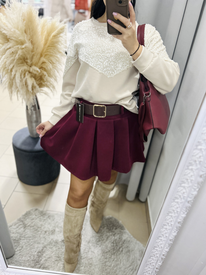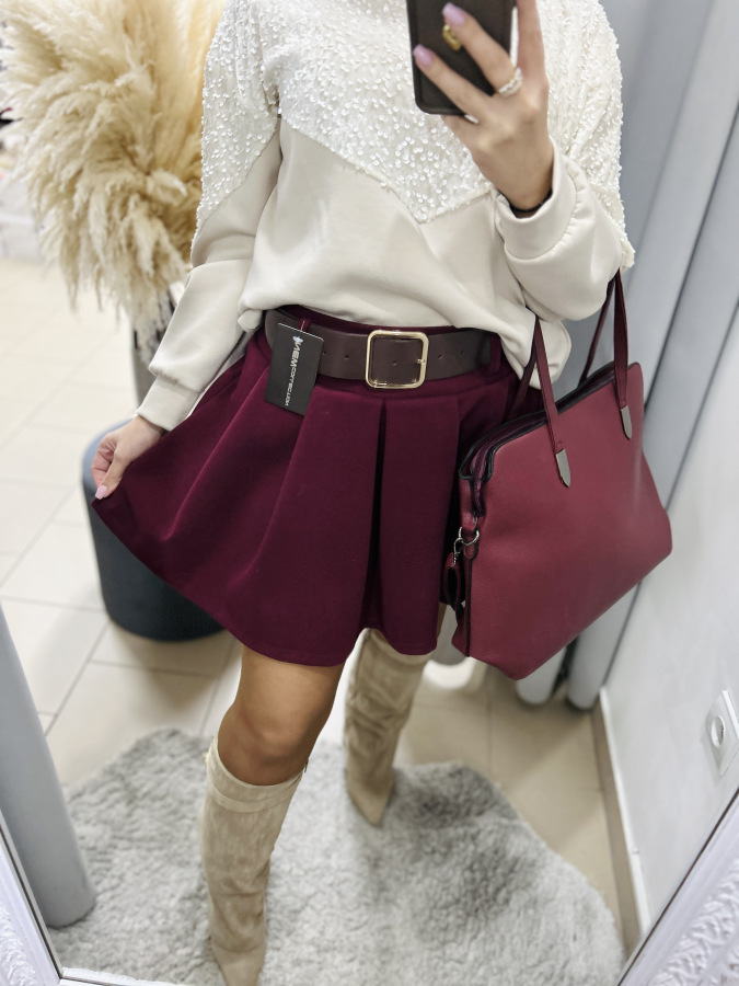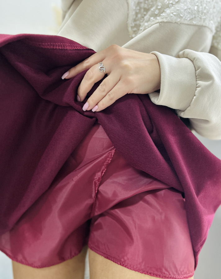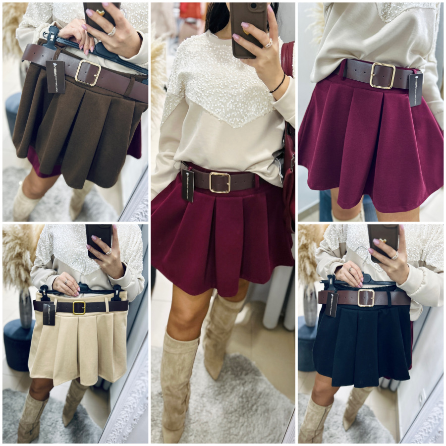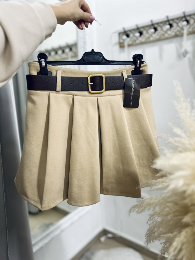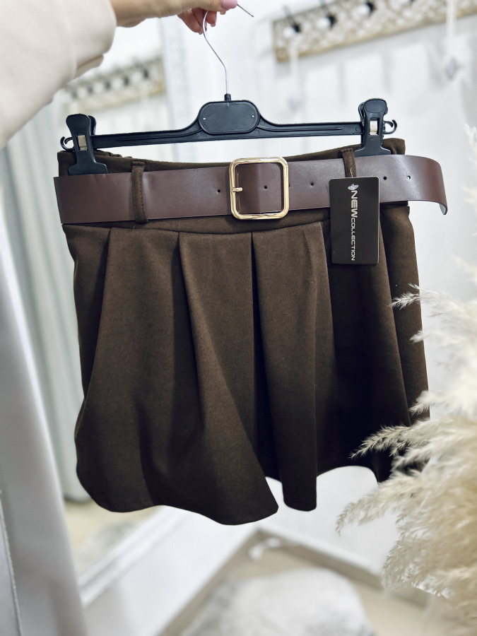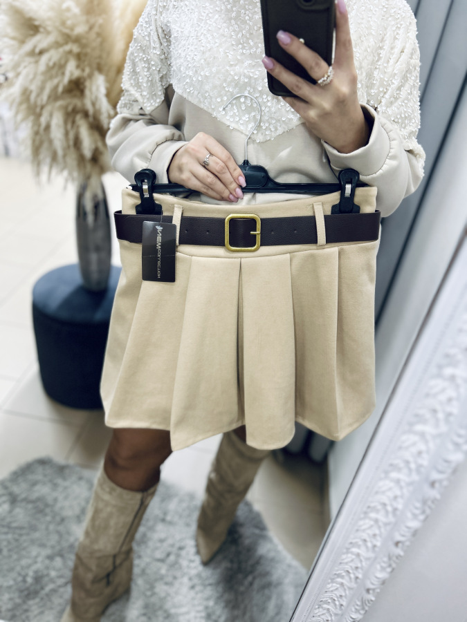 Kraťaso-suknička vhodná na jesenné a zimné dni. V páse je elastická guma, opasok je súčasťou.