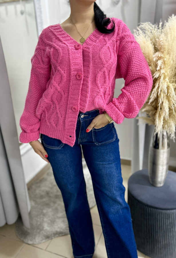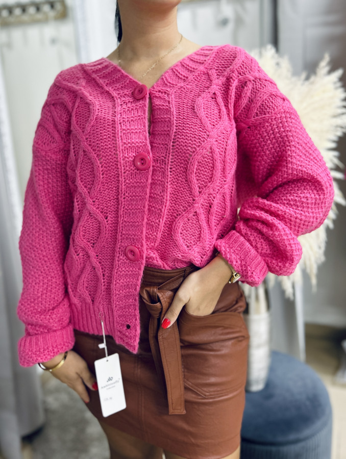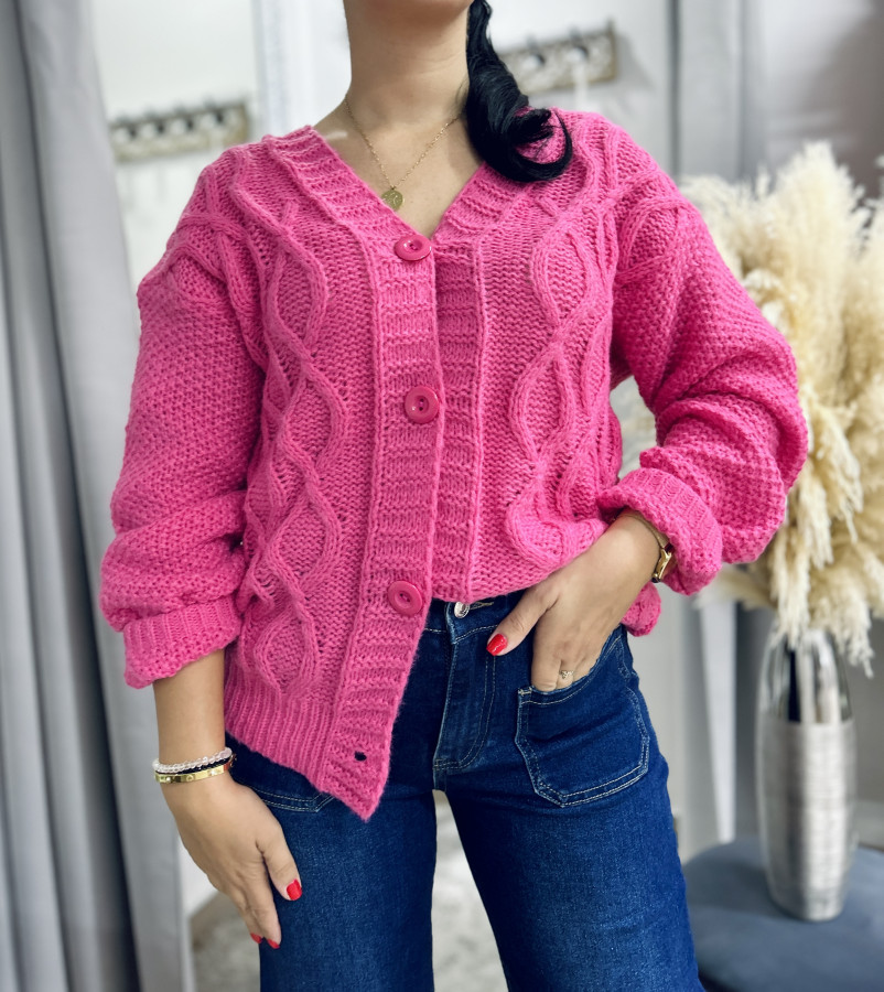 Pletený svetrík mierného oversize strihu so zapínaním na gombíky. Veľkosť UNI (M L XL)