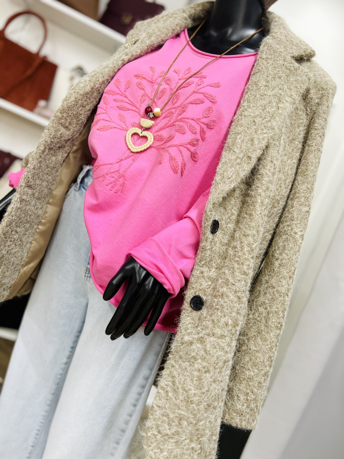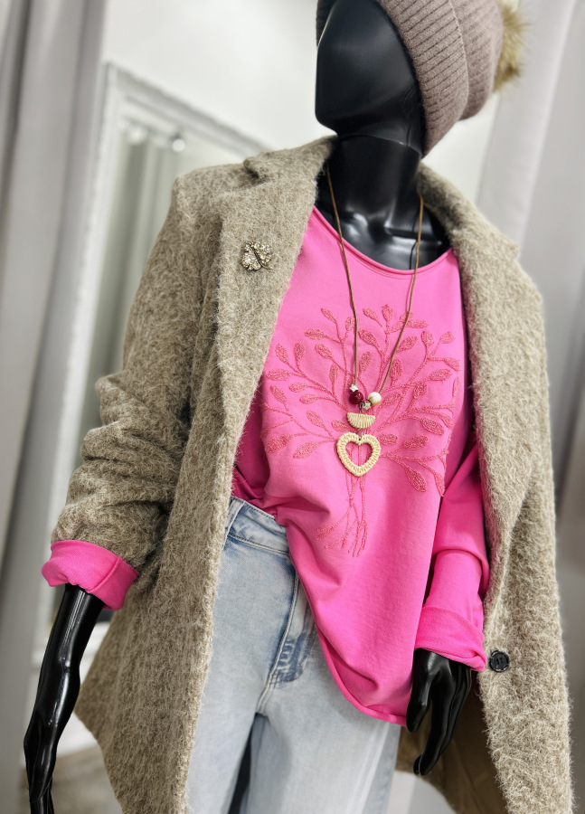 Bavlnený top s dlhým rukávom, ktorý môžete nosiť aj vyhrnutý. Top je s výšivkou stromu, skvelý materiál, vynositeľný k čomukoľvek, ODPORÚČAME :)
