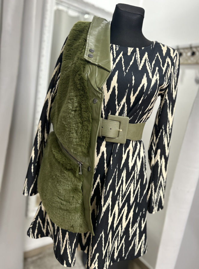 Šaty v čierno-béžovej kombinácii so vzorom. Veľkosť UNI (sadnú na veľkosti XS S M)