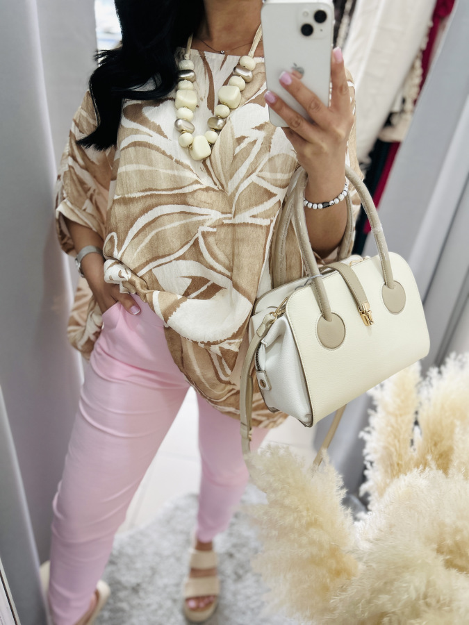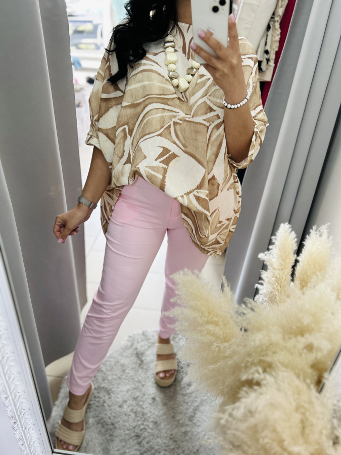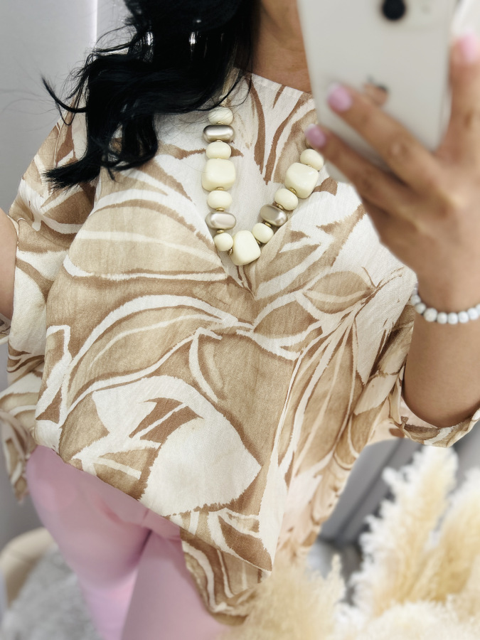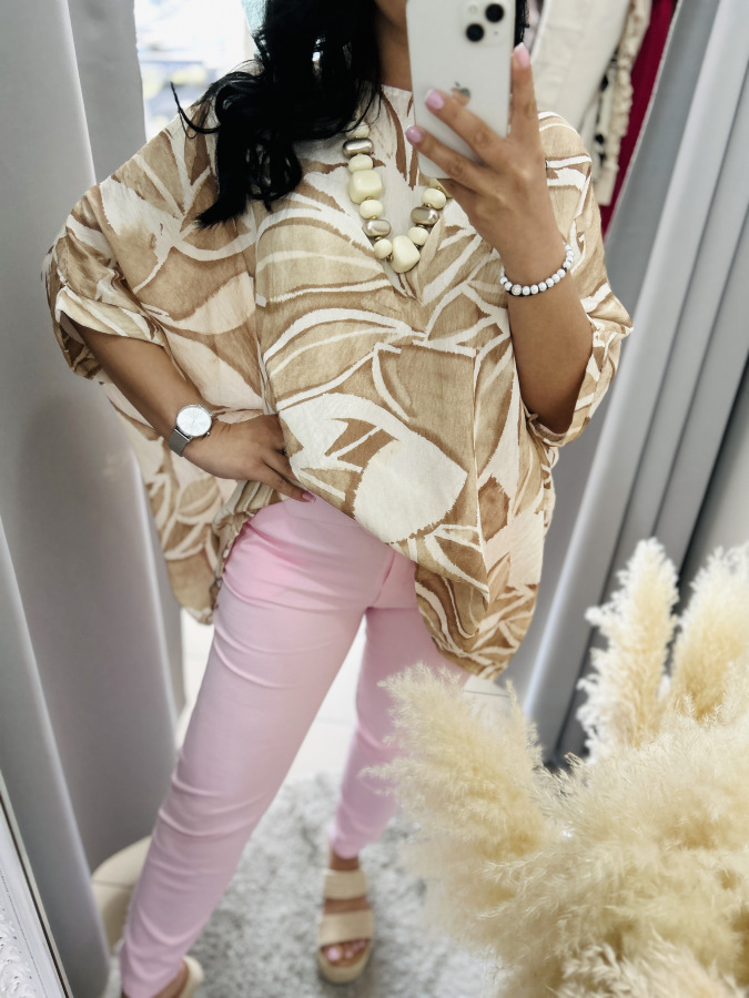 Vzorovaný top alebo tunika oversize strihu. Raglánový rukáv.