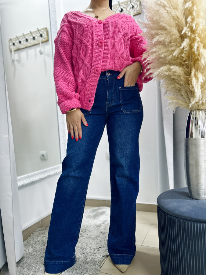 Štýlové rifle z tmavšej modrej rifľoviny obľúbenej značky RE-DRESS. Vyšší pás, zapínanie na zips a gombík, predné a zadné vrecká. Po dĺžke sú rifle postupne rozširované, pekne tvarujú postavu.